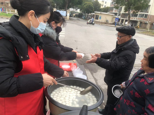 活动现场,物业工作人员早早煮好了热气腾腾的汤圆,黑芝麻、花生、豆沙等多种口味一应俱全。